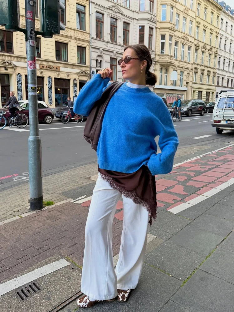 До більш нейтральних та все ж святкових дуетів належать білий і блакитний. Модниці додають до білого верхнього одягу аксесуари небесних відтінків, що в поєднанні нагадують ясний зимовий день зі свіжим пухким снігом, а також міксують блакитний трикотаж з трендовим білим денімом. Таке комбо завдяки світлим кольорам завжди матиме виразний вигляд, але не перенавантажуватиме твої базові луки.