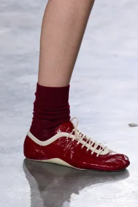 Час від часу виринає тренд на «зношене взуття», і streetstyle-блогери починають шаленіти від нього. Miu Miu та Yohji Yamamoto підказують нам, що у 2026 році також варто очікувати спалах популярності взуття з дефектами.