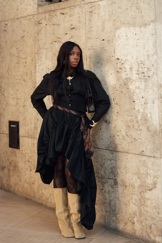 Окрім експериментів з матеріалами, можна також погратися з деталями одягу. Якщо ти маєш у шафі чорну річ із лелітками, з ремінцями або з торочками — спробуй інтегрувати її в total-look. Вона працюватиме за подібним до попереднього принципом, коли «оку буде за що зачепитися». Акцентний айтем у такому разі стане родзинкою, а решта одягу створить гармонійний фон — і в результаті образ матиме довершений вигляд без перенавантаження.