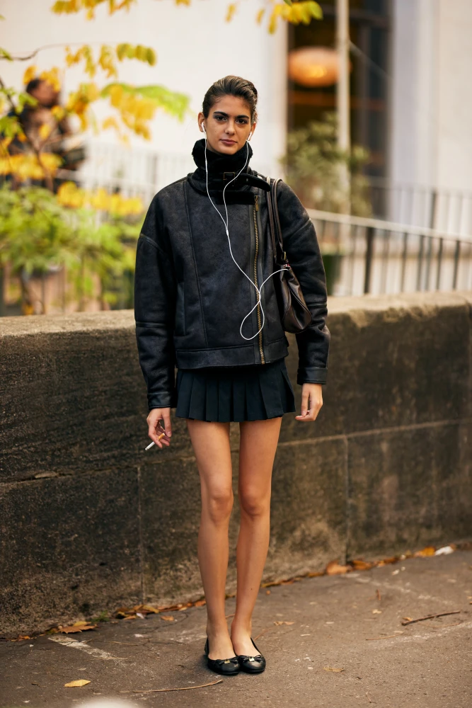 Найперша й, напевно, найбільш очевидна порада — грати з фактурами матеріалів одягу. Оскільки ми обмежені у способах урізноманітнення луків за допомогою кольорів, варто зосередитися на тому, із чого саме виготовлено речі. Якщо основні одиниці з бавовни — додай до них елементи зі шкіри, хутра, атласу, замші чи вовни. Разом з такими змінами в аутфіті з’явиться виразність, і одяг не перетвориться на суцільну чорну пляму. Шкіра забезпечить блиск, хутро підкреслить динаміку в русі, атлас подарує більш плавні лінії в силуеті.