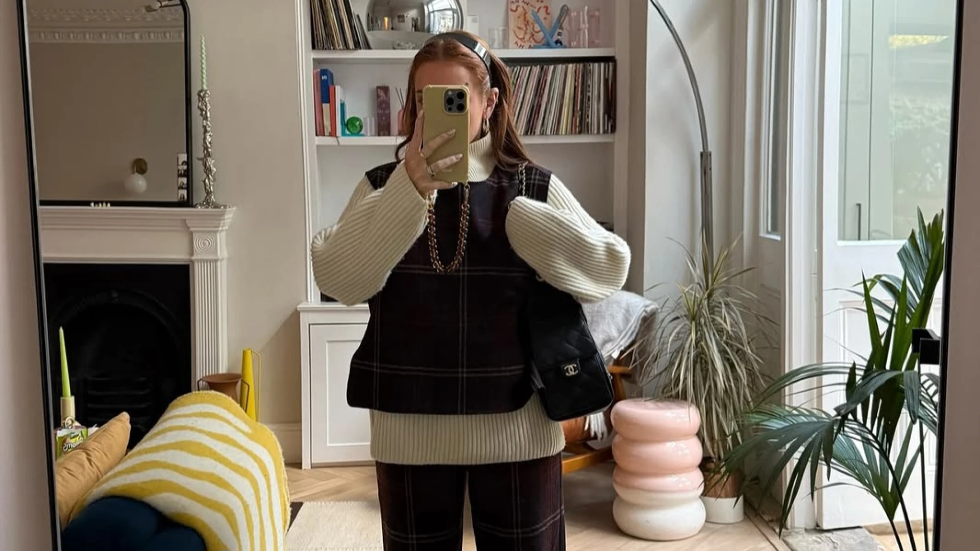 Дуже практична комбінація, від якої так і віє затишком, — це светр із жилеткою або манишкою зверху. Під такий верх буде доречно одягнути темні вовняні штани або ж коричневі джинси й доповнити все улюбленою сумкою.